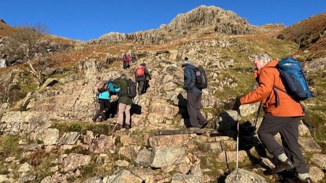 B walks have up to 800m (2,600 feet) of climbing and are up to 16km (10 miles), taken at a good pace. Between April and October we use the longer days to include some more demanding walks, referred to as B+.